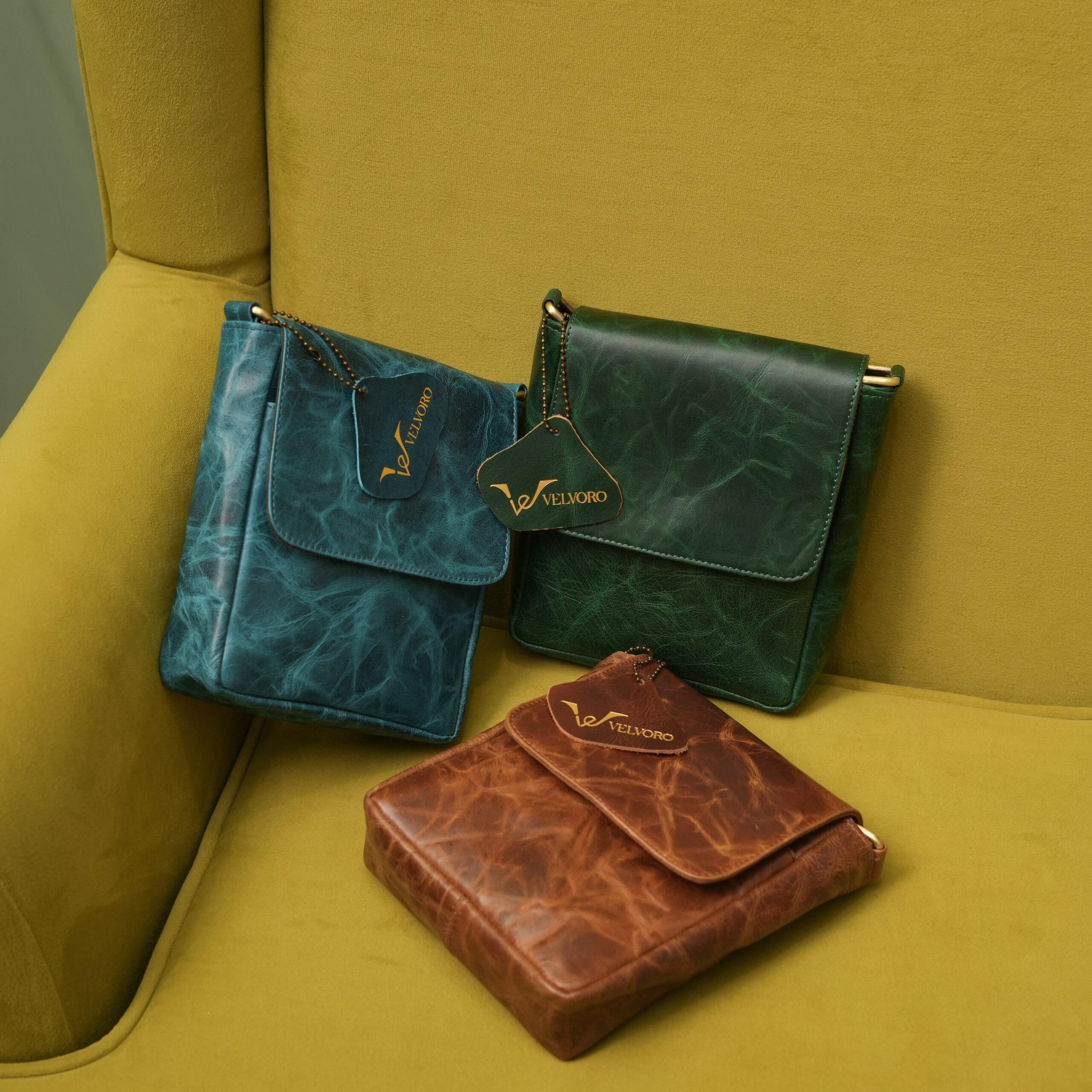 Be the first to review “Compact Green Leather Crossbody Bag – Double Coated Antique Fittings”