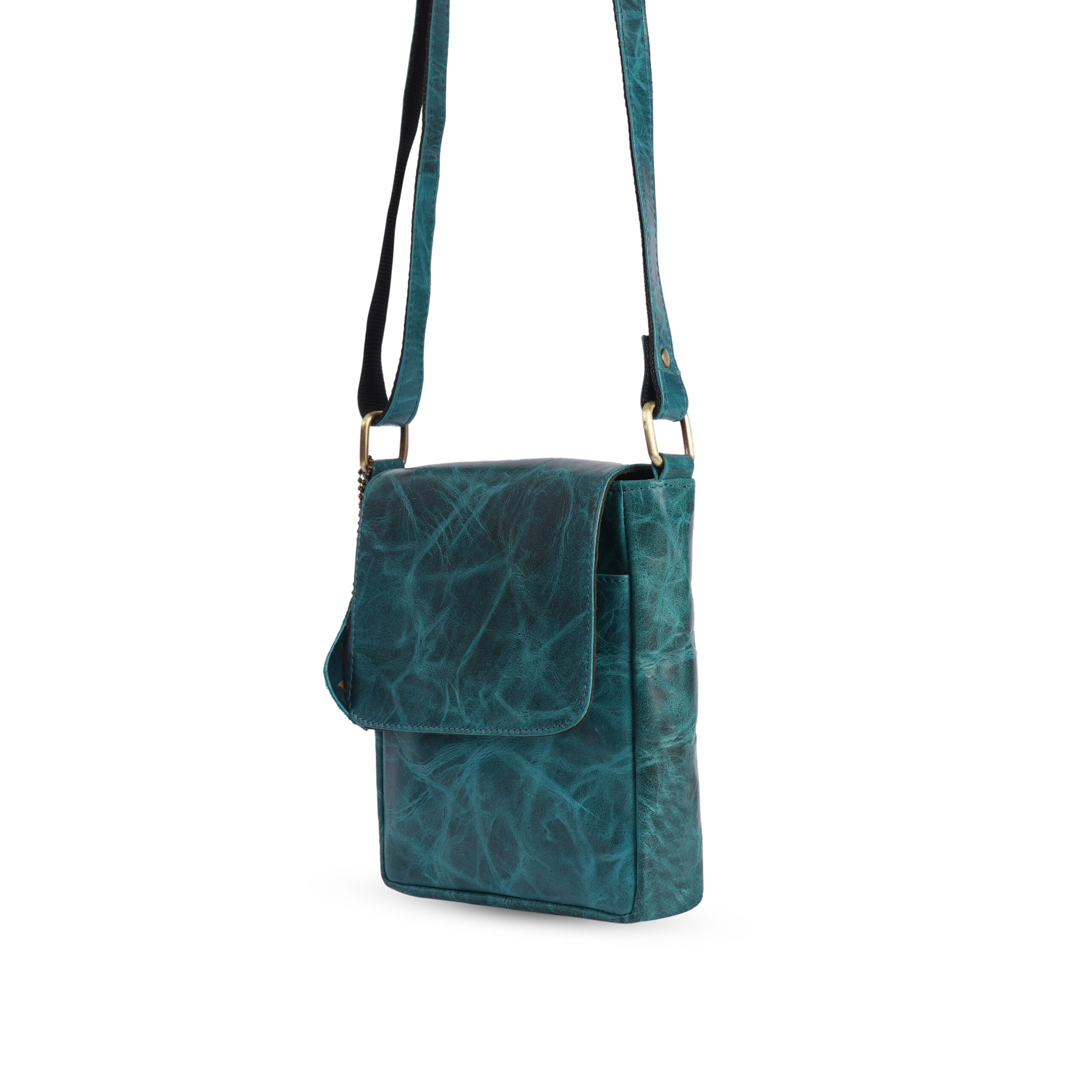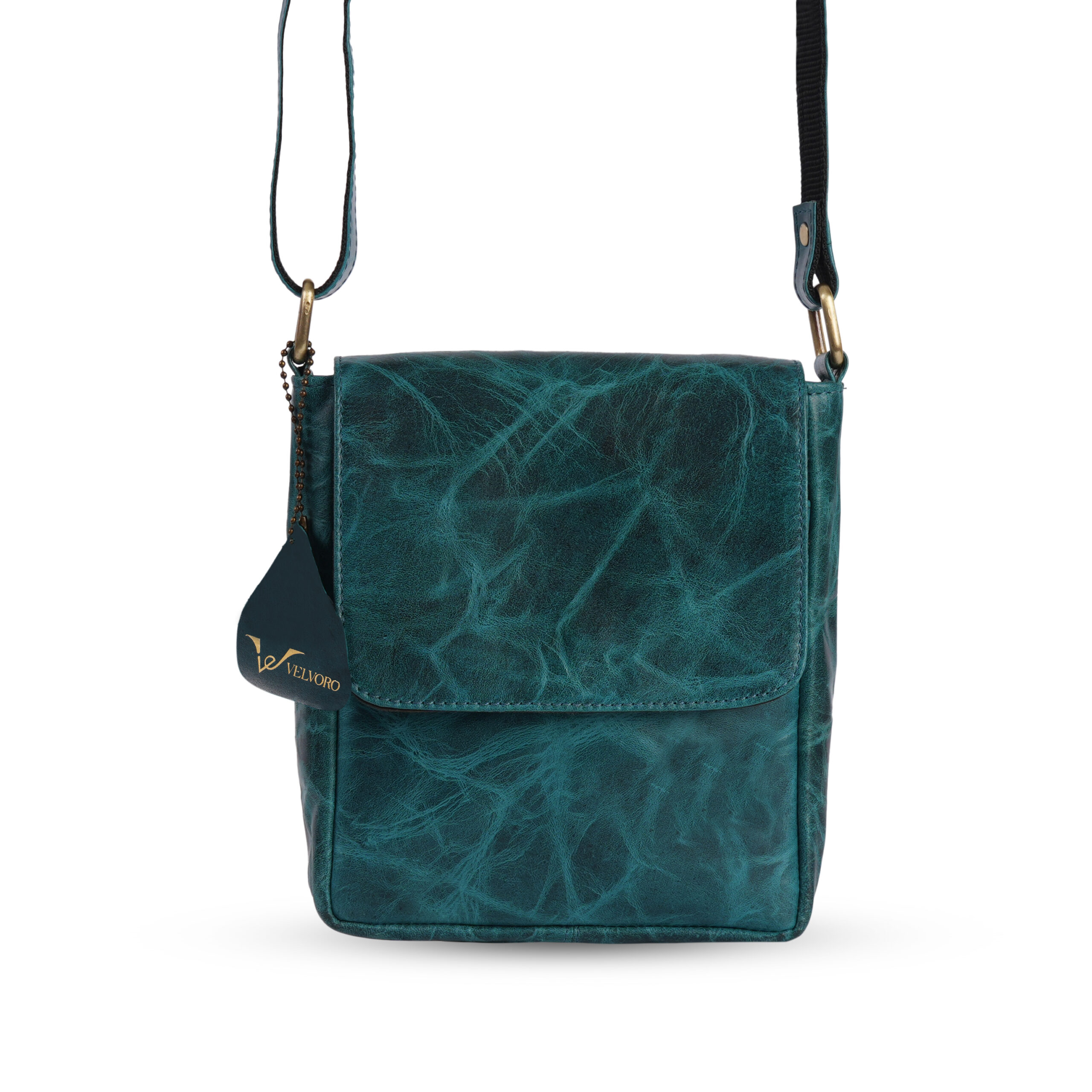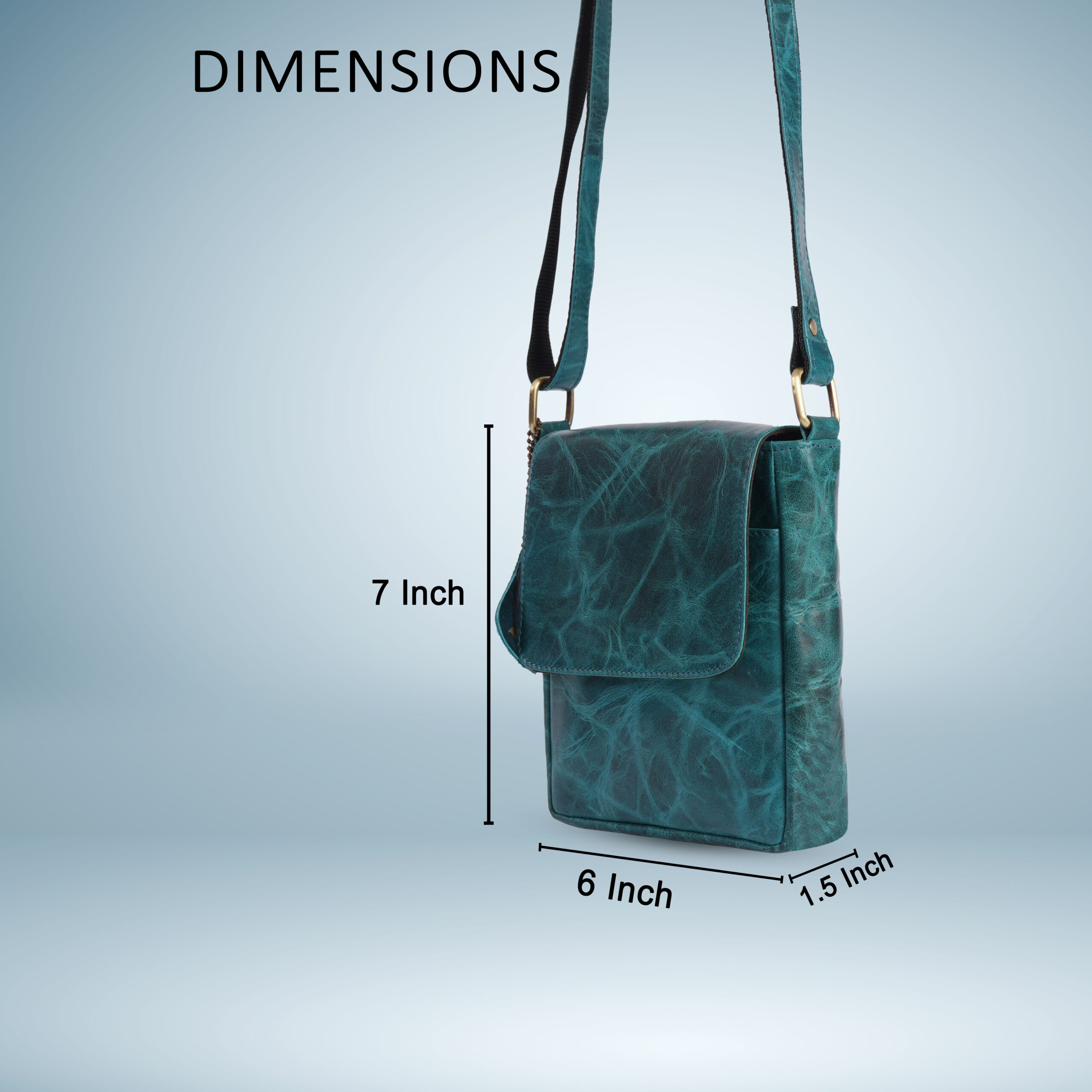 Step out in style with this compact yet classy green leather crossbody bag featuring high-quality double-coated antique fittings for a touch of timeless charm and durability.