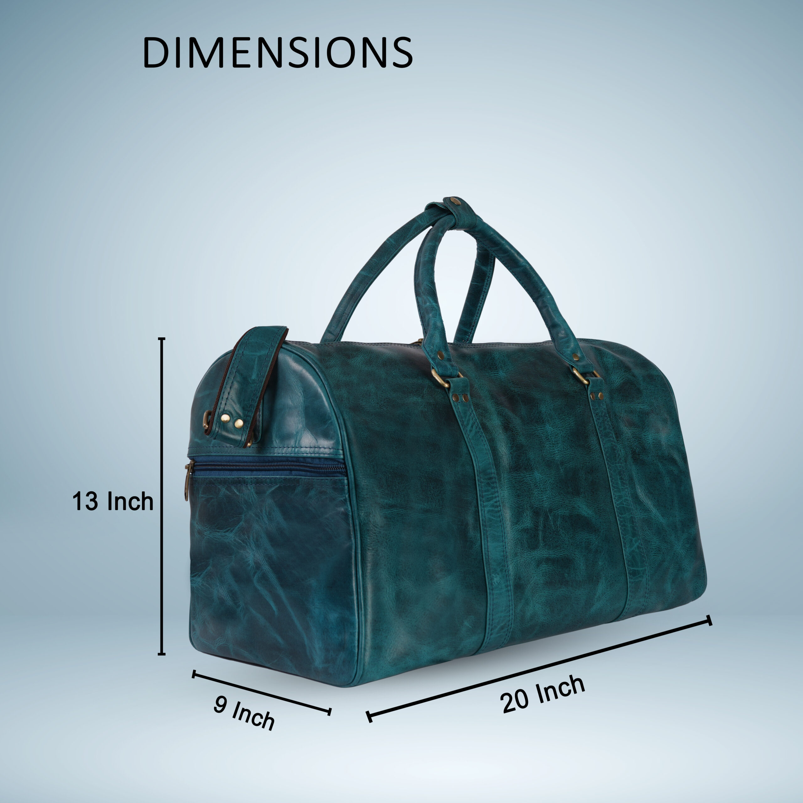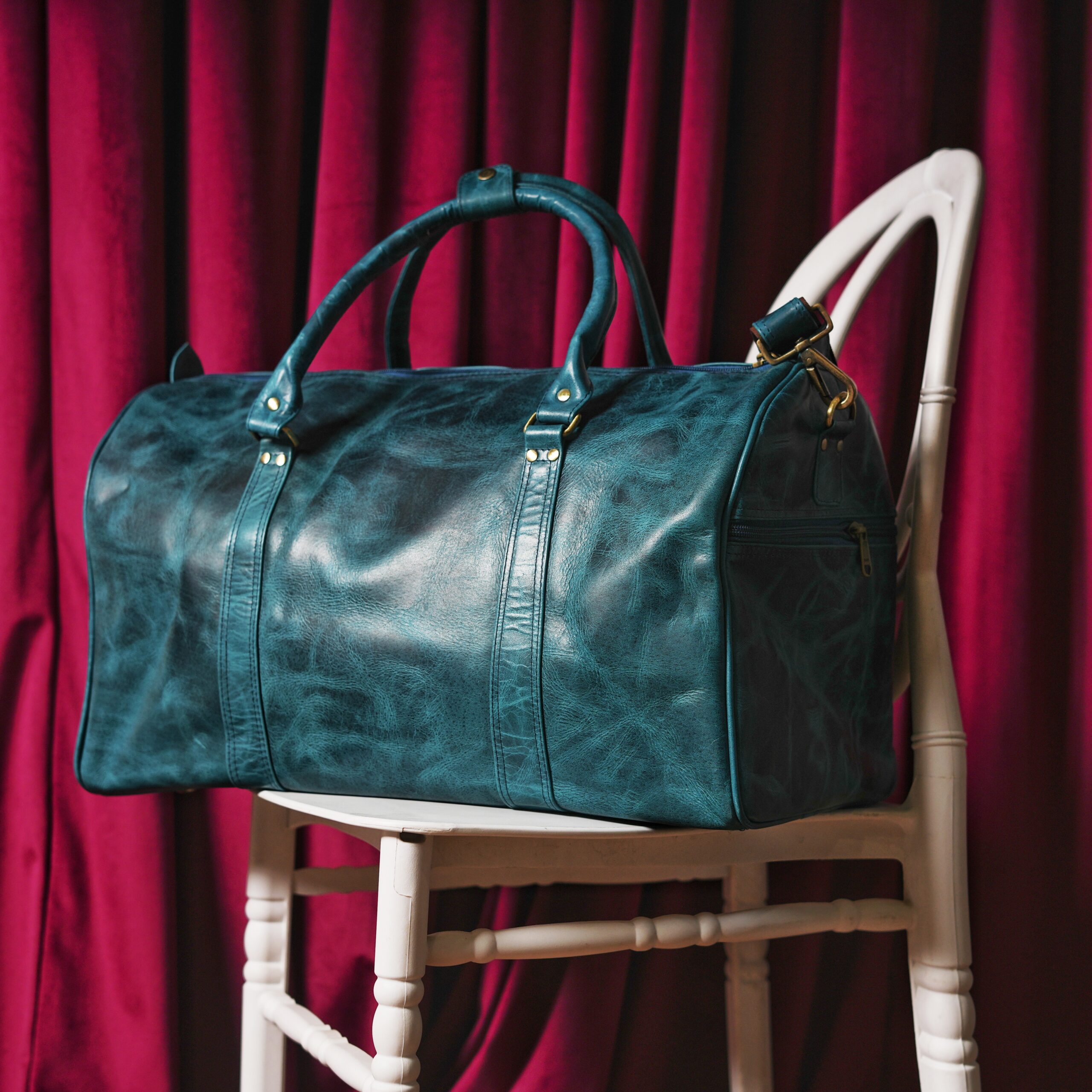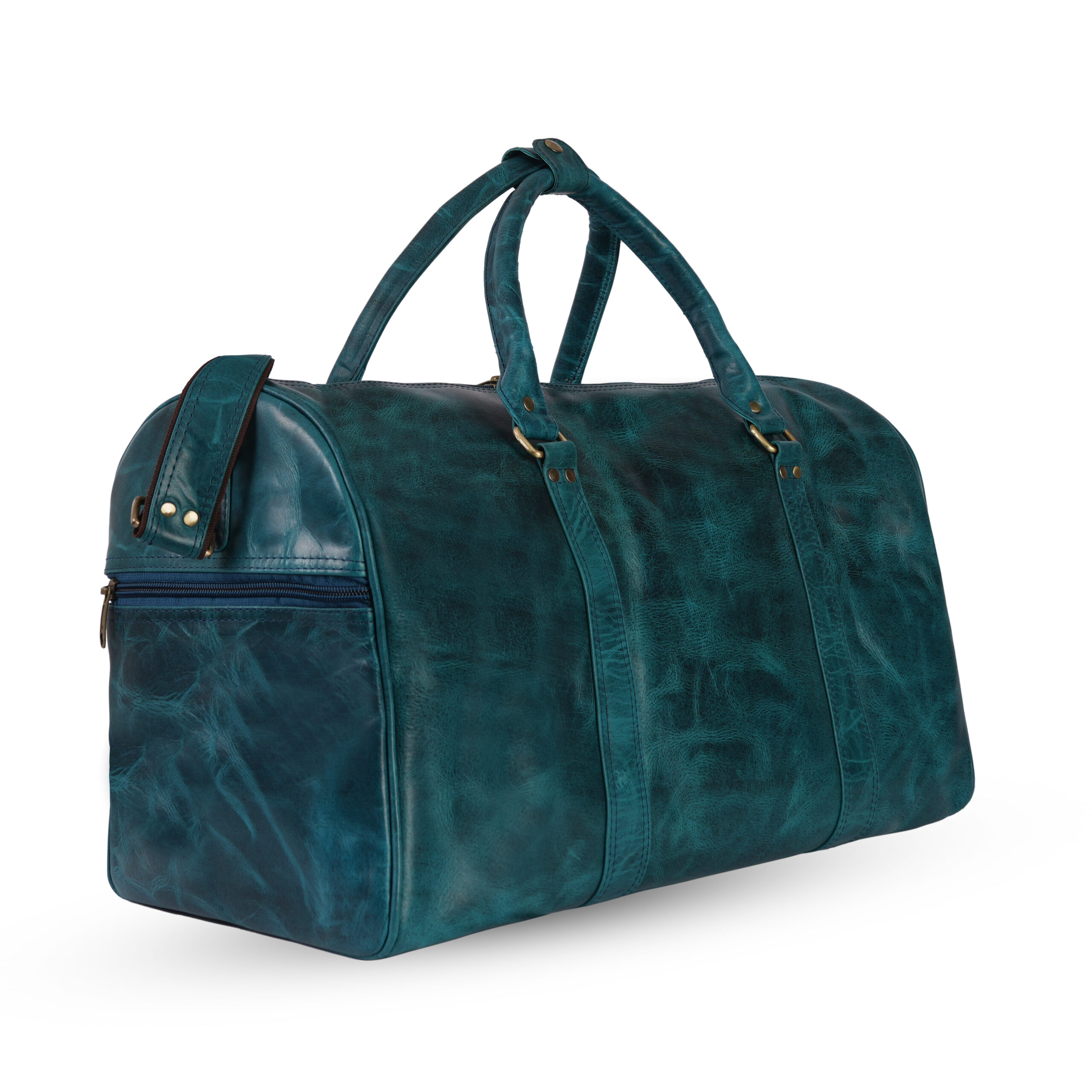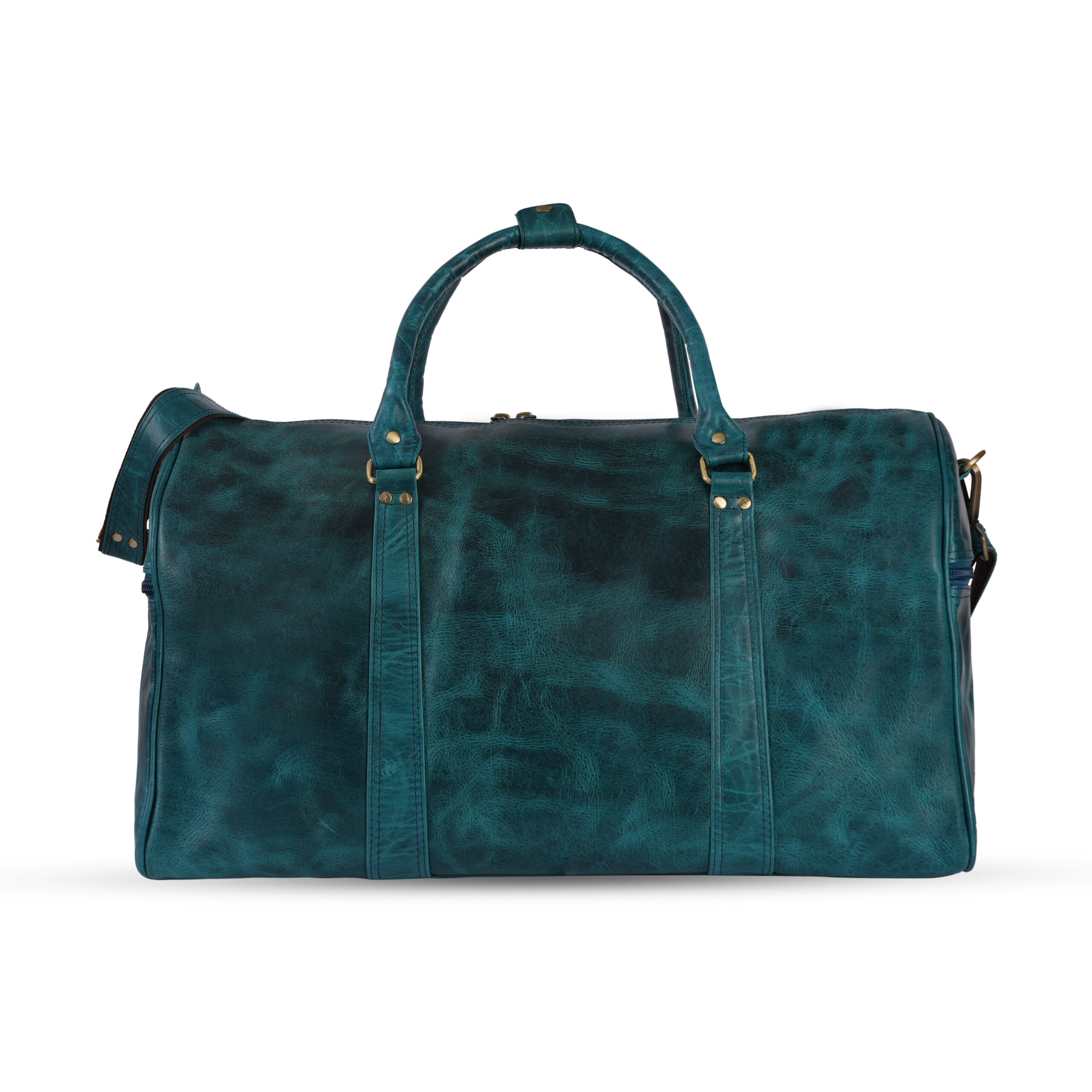 Stand out with sophistication using this eye-catching teal leather duffel bag. Designed for the modern traveler, it features a premium leather finish, strong handles, and a detachable shoulder strap for versatile carrying. Its spacious interior makes it perfect for weekend trips, gym sessions, or overnight stays.